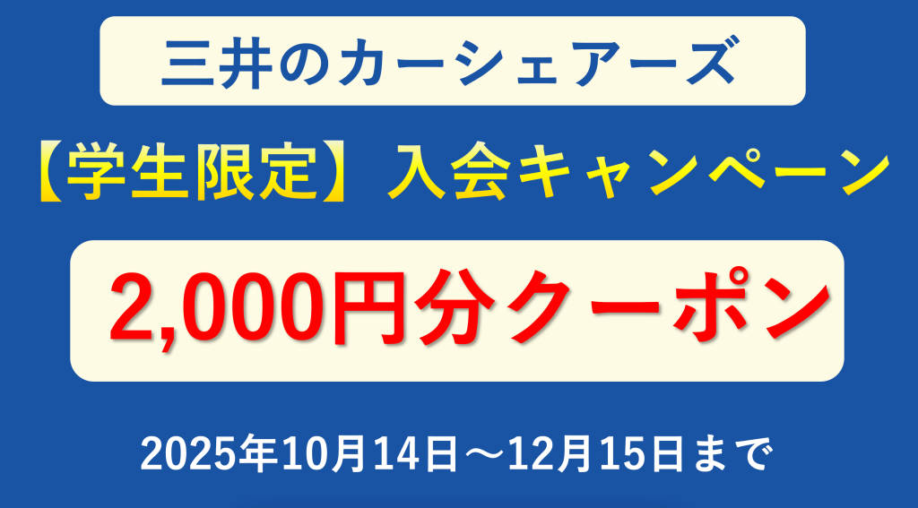 三井のカーシェアーズでは新規入会キャンペーンが1つ実施されています。
