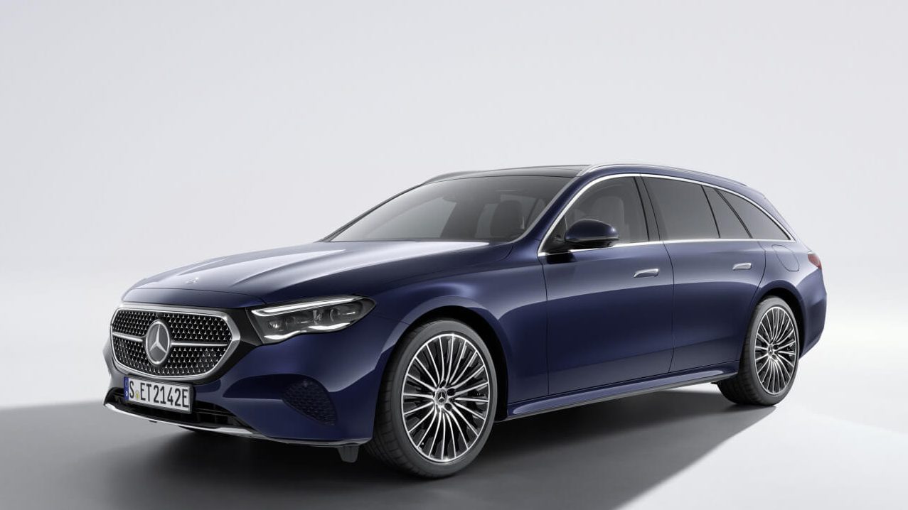 Cクラスよりもサイズが大きい「Eクラスステーションワゴン」。全長は5m近く、かなり大きいです。2024年のモデルチェンジでデザインやインフォテイメントシステムなどもアップデートされ、全てが備わった一台です。