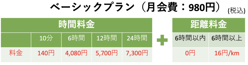 毎月無料でベーシックプランの料金で車が利用できるのは羨ましい!!