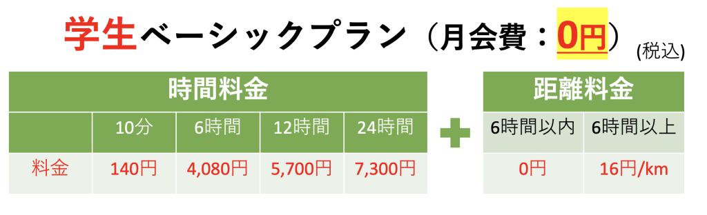 つまり,学生は毎月の会員費が0円でベーシックプランの料金で利用ができます。