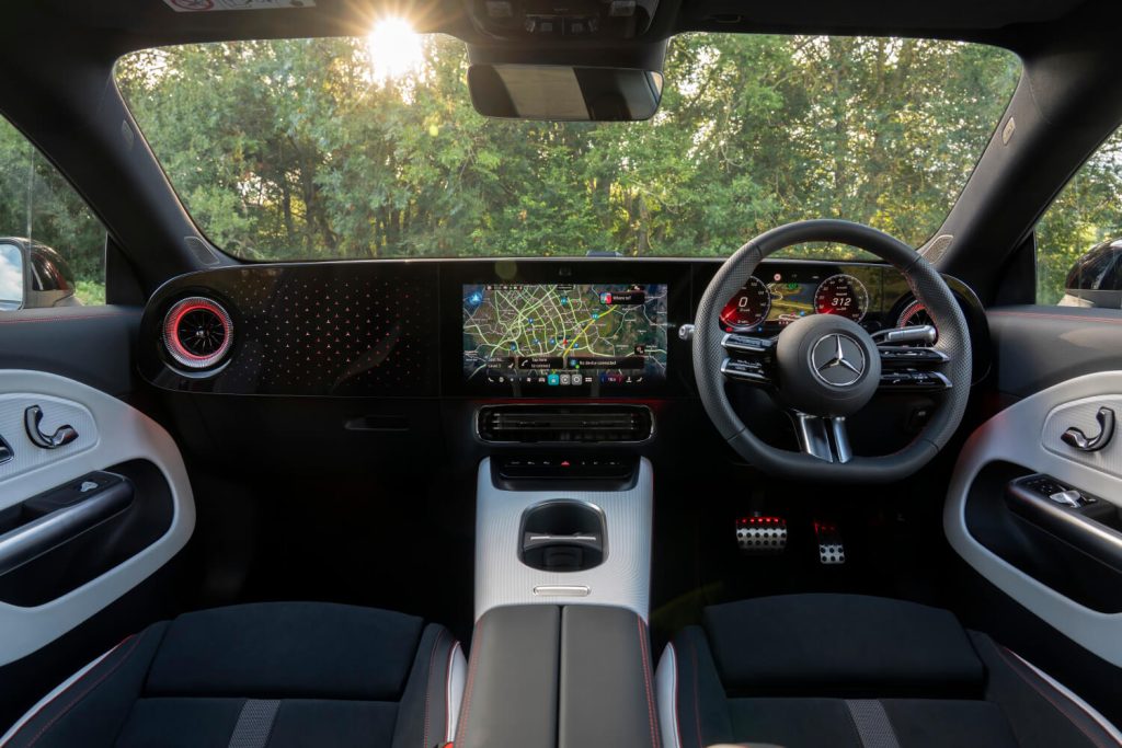 インテリアには、最新世代のMBUX(メルセデス・ベンツ ユーザーエクスペリエンス)を搭載。大型縦型ディスプレイを中心としたデジタルコックピットが採用され、操作性と視認性がさらに向上しています。
