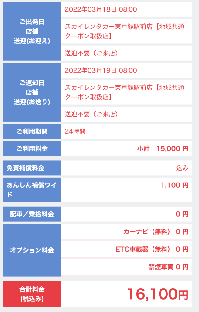 | レンタカー会社 | スカイレンタカー |