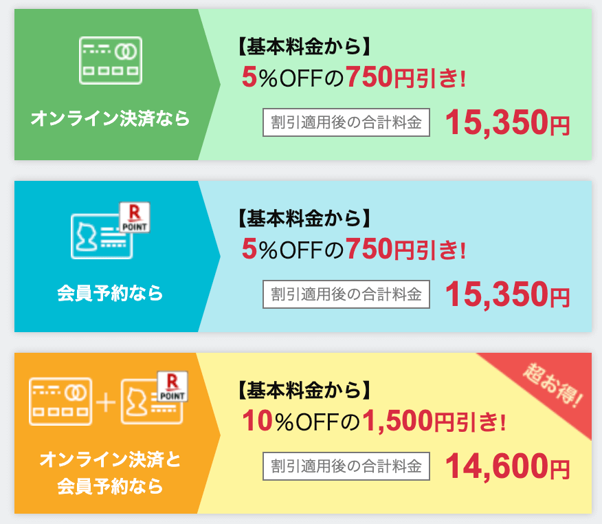 オンライン決済なら,基本料金が5%OFFになるのでおすすめです!!