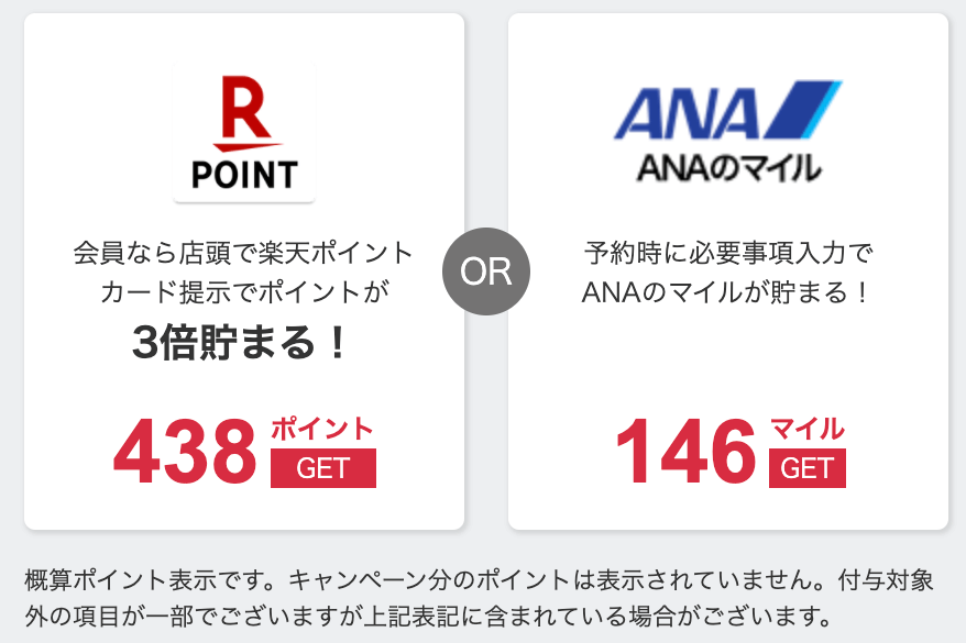 ・楽天ポイントor ANAマイルが貯まる