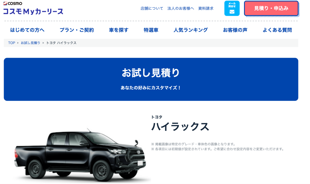 コスモMyカーリースでハイラックスに乗ろう!!